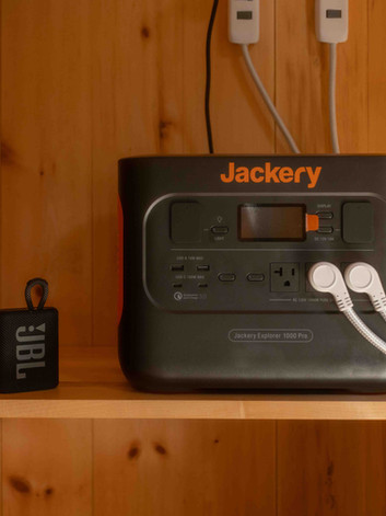Un abri simple et moderne, les larges fenêtres rectangulaires encadrent parfaitement la nature. Un poêle à bois pour les nuits froides, un petit espace pour cuisiner et une toilette à composte se trouvent à l'intérieur du chalet. Une batterie portative Jackery vous donnera juste assez d'énergie pour allumer quelques lumières et charger votre téléphone, et un foyer extérieur crée un environnement idéal pour des longues nuits sous les étoiles.